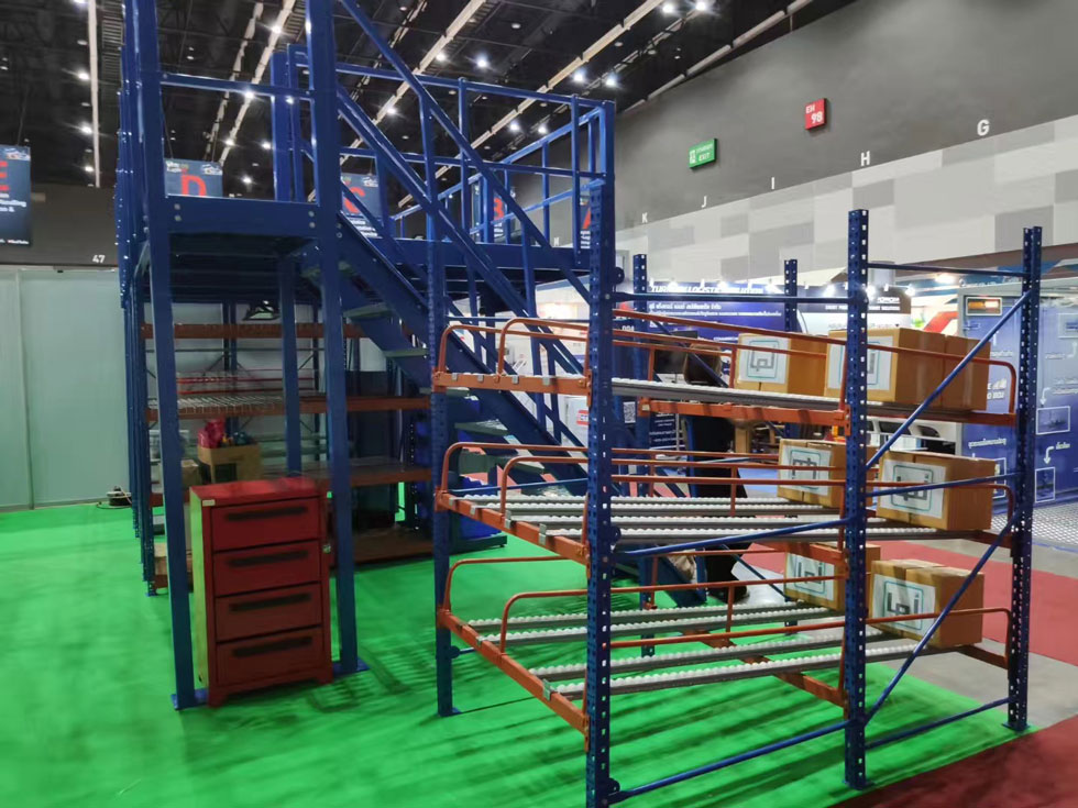 由公司外貿部同事參加2019年泰國曼谷國際物流展,參展展品有重型貨架、貨架平臺、穿梭式貨架、流利式貨架等。籌備工作已完成,今天展會正式開始,為期3天8.29-8.31。